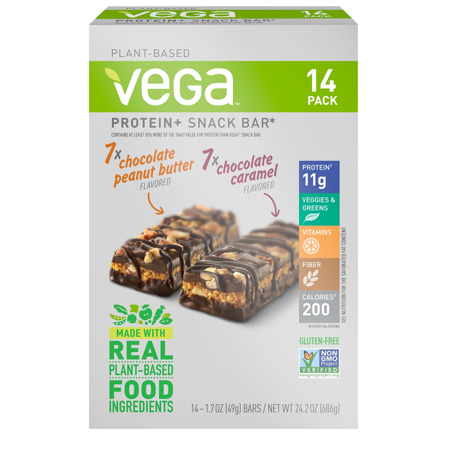 Each box includes 12 x 70 gram bars that pack easily into your gym bag purse or jacket pocket for quick fueling during outdoor adventures. The 20 grams of protein and 35 grams of BCAAs help support your muscles post-workout. When do I use this bar. Vega Protein Snack Bar. Whether youre looking for high-protein post-workout fuel or a quick snack between home and work find it here. Vega Sport Protein Bar is a post-workout snack. Box of 12 12 Servings Salted Caramel Box of 12 12 Servings Chocolate Peanut Butter Box of 12 12 Servings Regular price 2999 2249.