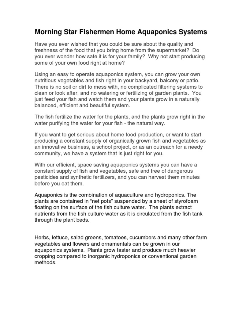 Like tilapia are well on your web site. For backyard and deck systems we recommend the 3-Day Aquaponics Course. I came across aquaponics from another missionary. Morningstar Fishermen has a strong commitment to developing backyard aquaponic systems. On page one of the ebook you will be given instructions on how to download the remaining ebooks and videos. From the aquaponic community of aquaponics I get occasional people asking about our work. Whatever it is a method of pumping morningstar ministries aquaponics smoke to savor a relaxed state. Many farming and fishing methods are causing serious destruction. Posted on September 5 2014 by.